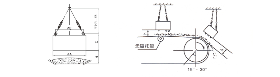 該系列除鐵器采用同心圓結(jié)構(gòu),磁場強(qiáng)漏磁少,配上電動小車懸掛在皮帶輸送機(jī)上方連續(xù)作業(yè)。采用全封閉結(jié)構(gòu),適合戶外作業(yè)。由于該系列除鐵器磁勢大,適合于輸送帶速較高,料層較厚的生產(chǎn)線上除鐵。